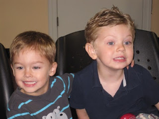 Last Saturday was Grant's 3rd birthday party. We had it at Jumper's Playhouse in Smyrna! This place was a great place to throw a party, basically you show up with cupcakes and they do everything else! Grant and Nate were super excited (remember Nate had spent the night with us) and Emily managed to get one quick picture of them before they started jumping.